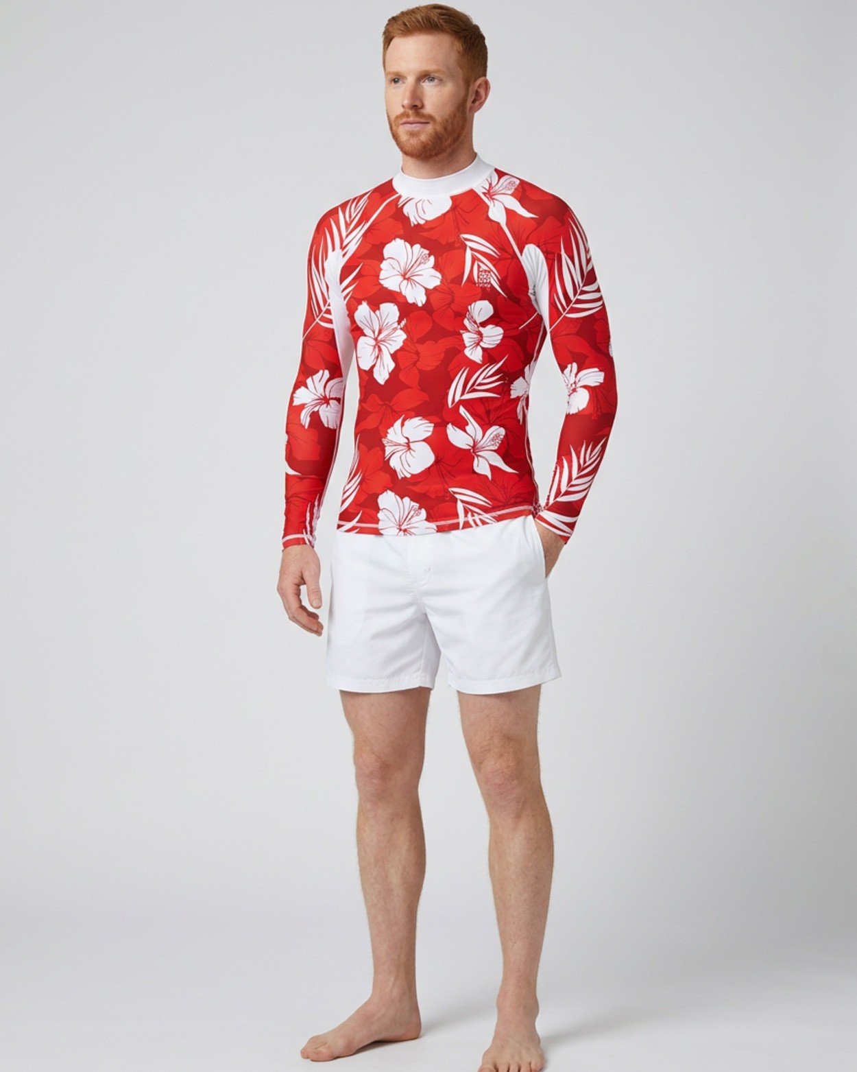 Hawaii Rot Design. UPF 80 Sonnenschutz, atmungsaktiv und schnelltrocknend.